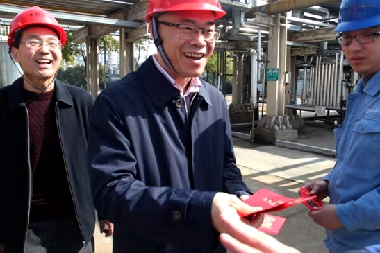 張萬(wàn)順深入中控室、配電室、生產(chǎn)車間、環(huán)氧卸車平臺(tái)、污水處理站。每到一處,他都與員工一一親切握手,“同志們辛苦了”,“給大家拜年了”,一聲聲問(wèn)候,一句句祝福,溫暖了堅(jiān)守一線的每一位員工。