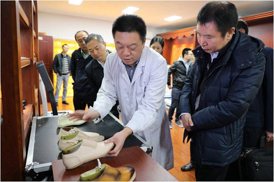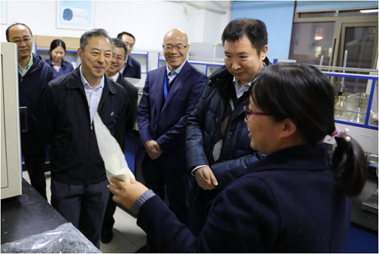 會后,曹國英一行在張萬順和蔡木易等人的陪同下參觀了皮革院,并對皮革院清潔生產(chǎn)、資源化利用、功能性皮革材料等方面的研發(fā)成果給予充分肯定。