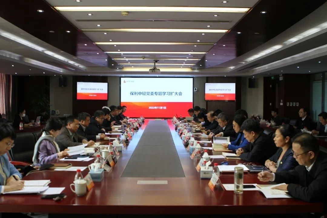 在全面學習貫徹黨的二十大精神之際,全面啟動部署明年全面預算工作之時,保利中輕黨委按照保利集團黨委要求原原本本學習的同時,11月1日下午組織召開黨委專題學習擴大會,緊緊圍繞“深入學習貫徹二十大精神,落實‘八維精益’理念,推進高質(zhì)量發(fā)展”主題,結合企業(yè)實際進行集中學習研討。保利中輕黨委書記、董事長安勝杰主持會議并總結講話。保利中輕領導班子成員、總經(jīng)理助理、總部各部門負責人,二級子公司黨政主要負責人分別以現(xiàn)場和視頻形式參會。