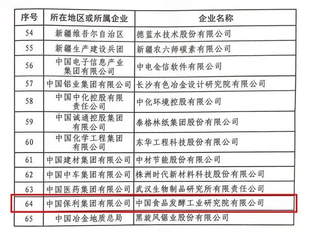 在黨的二十大勝利閉幕不久,工業(yè)和信息化部公布了2022年國家技術創(chuàng)新示范企業(yè)認定名單,全國有65家企業(yè)入選,保利中輕所屬中國食品發(fā)酵工業(yè)研究院憑借在食品行業(yè)的自主創(chuàng)新力和市場競爭力登上榜單,被認定為2022年“國家技術創(chuàng)新示范企業(yè)”。