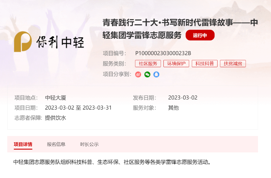 保利中輕總部組織建立青年志愿服務(wù)隊(duì),牽頭開(kāi)展學(xué)雷鋒系列主題活動(dòng)。指導(dǎo)廣大團(tuán)員青年進(jìn)行注冊(cè)并加入團(tuán)隊(duì),號(hào)召?gòu)V大團(tuán)員青年立足崗位、敬業(yè)奉獻(xiàn),接續(xù)傳承服務(wù)人民、助人為樂(lè)的雷鋒精神。