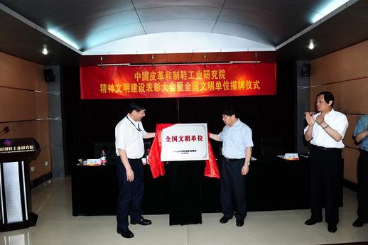 2012年6月8日,中國(guó)皮革和制鞋工業(yè)研究院召開精神文明建設(shè)先進(jìn)集體和先進(jìn)個(gè)人表彰大會(huì)暨全國(guó)文明單位揭牌儀式,集團(tuán)公司董事長(zhǎng)、黨委書記陳鄂生,黨委副書記、紀(jì)委書記梁江東,皮革制鞋院院長(zhǎng)、黨委書記楊承杰,副院長(zhǎng)田美,黨委副書記、副院長(zhǎng)宋昕以及集團(tuán)公司人力資源部負(fù)責(zé)同志及全院職工出席了會(huì)議。會(huì)議由皮革制鞋院宋昕主持。