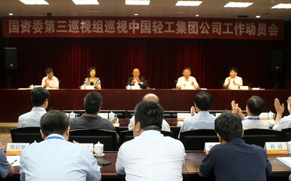 根據(jù)國務(wù)院國資委黨委統(tǒng)一部署,國資委第三巡視組近日進(jìn)駐中國輕工集團(tuán)公司(以下簡稱中輕集團(tuán))開展巡視。7月1日上午,國資委第三巡視組巡視中輕集團(tuán)工作動員會召開。國資委第三巡視組組長韓修國就巡視工作作了講話,國資委巡視工作領(lǐng)導(dǎo)小組成員、巡視辦主任阮國平就配合做好巡視工作提出要求。中輕集團(tuán)黨委書記、董事長陳鄂生主持會議并作表態(tài)發(fā)言。國資委第三巡視組副組長于學(xué)范、巡視組全體成員,國資委巡視辦有關(guān)人員出席會議。